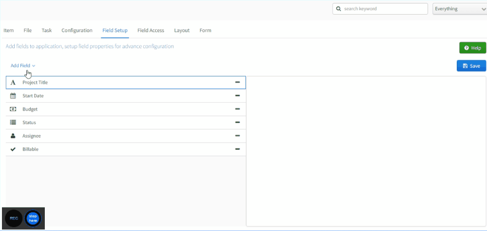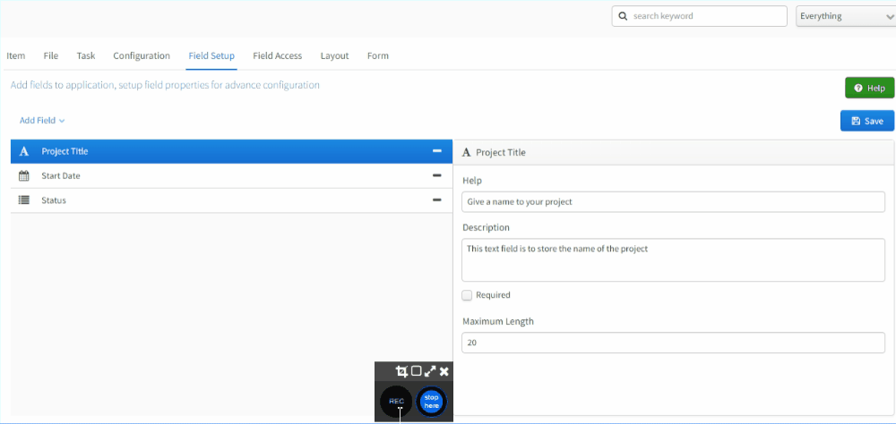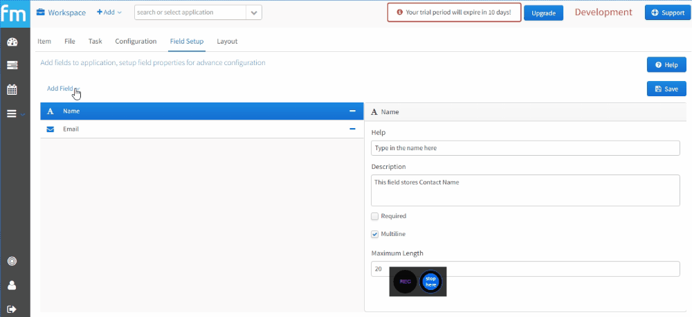 The fields that you select for the Application can be configured as per the configuration options available. There are some common configuration points in every field and they are: